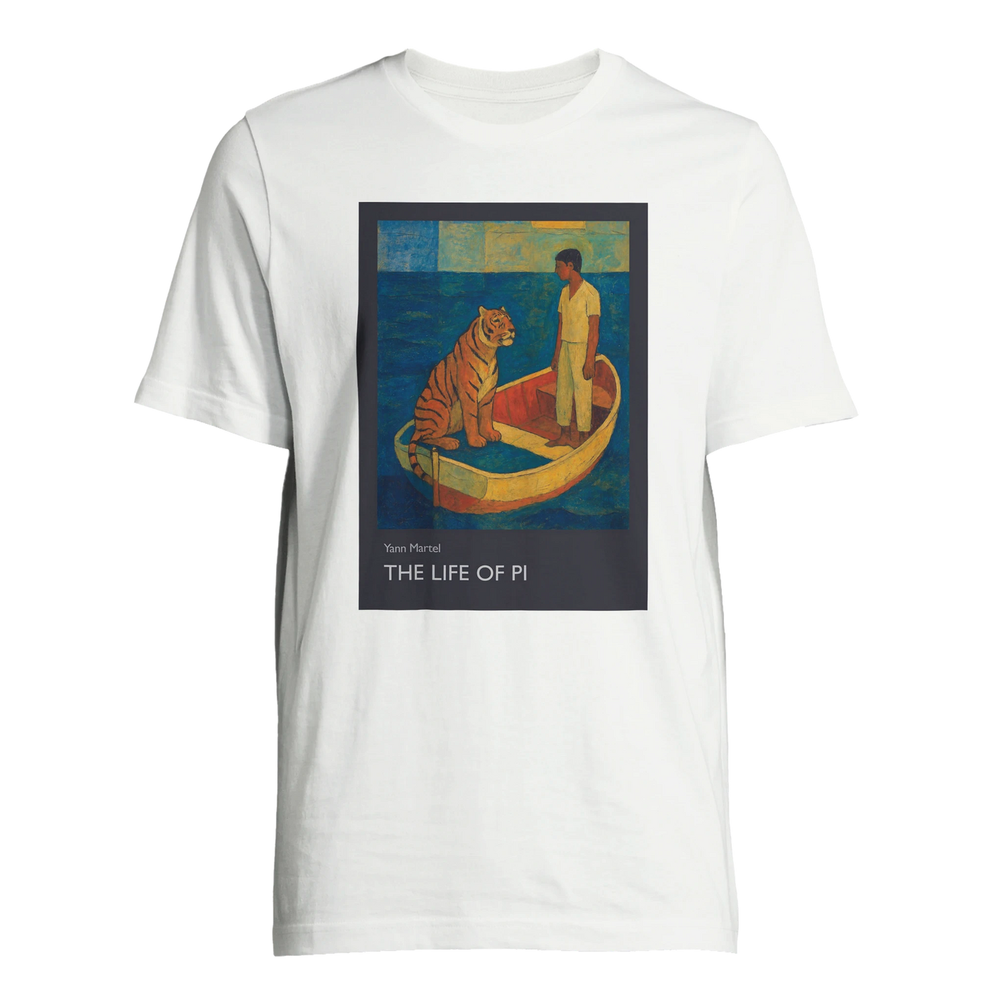 My image of a Life of Pi Inspired Unisex T-Shirt, is inspired by the remarkable bond between a young boy and a Bengal tiger as depicted in the story by Yann Martel.